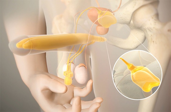 Implant składa się z dwóch elastycznych cylindrów, które są wszczepiane do ciał jamistych prącia.